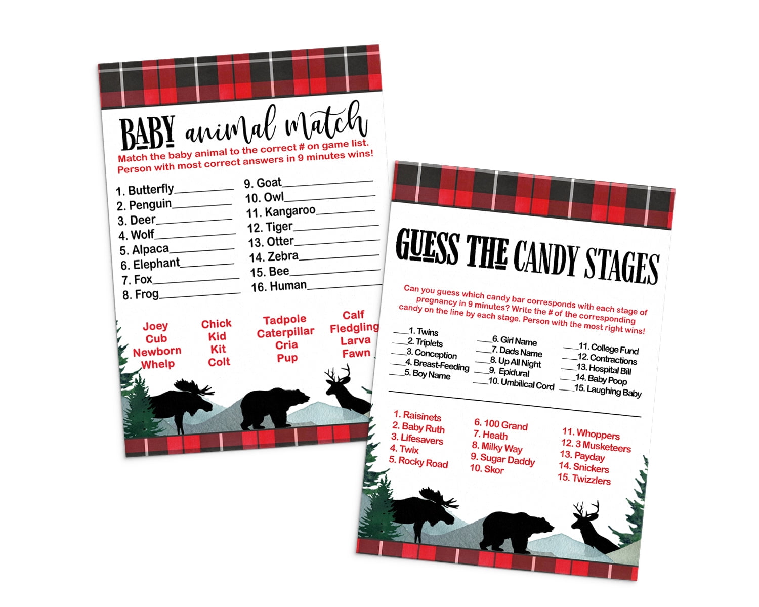 Lumberjack Baby Shower Game Card Bundle 2 In 1 Pack 25 Each Includes Baby Animal Pair Game Guess The Candies Activity Red And Black Plaid Bear Paper Clever Party Walmart Com